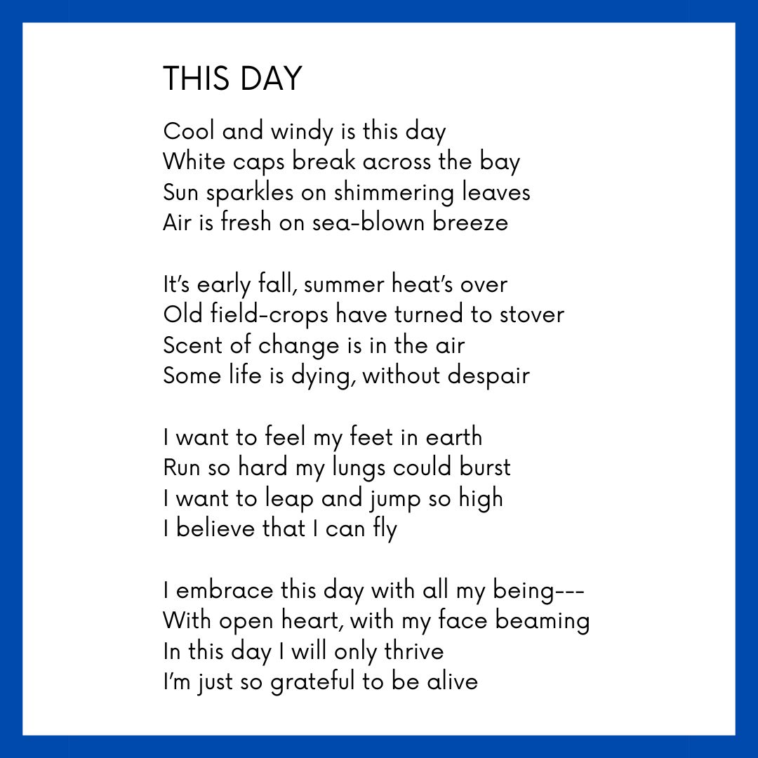 “It was just a few years ago, when his neuropsychologist was urging him on and his neuro-physical therapist was teaching him to walk again, that he’d go outside, even in winter, to practice with his hiking poles. The neighbors and I would watch as he walked around the patio in circles, reciting and sometimes singing at the top of his lungs his mantra poems that he wrote to encourage himself to keep on living. Now look at what he has done in poetry, music, and art, as well as his physical recovery. It’s amazing.”