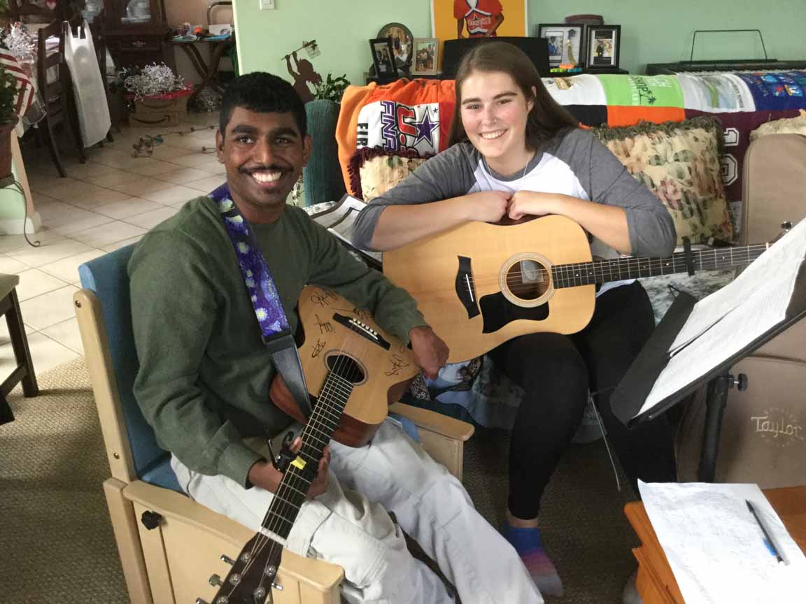 I had a guitar and piano lesson at my house . Katherine is my guitar and piano teacher . [...]