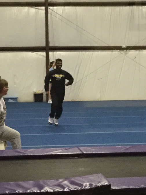 This is me running in the gym. Warming up for Cheerleading practice.