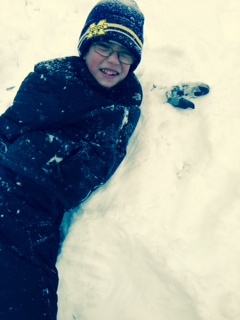 It snowed here in Toledo, Ohio this weekend. My sister and I had so much fun playing in it. It was not heavy enough to make a snowman though. I am looking forward to making a snowman like Frosty!