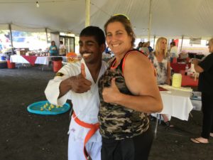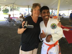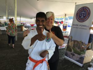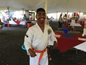 I had a Karate Demonstration at Mayfield, PA. I showed everyone forms and breaking. I wore a Karate uniform with an orange belt. My friends and family were watching me. I broke a board with my right elbow. I take Karate lessons with Tiger Karate Academy. I was so happy and excited to demonstrate for an audience.