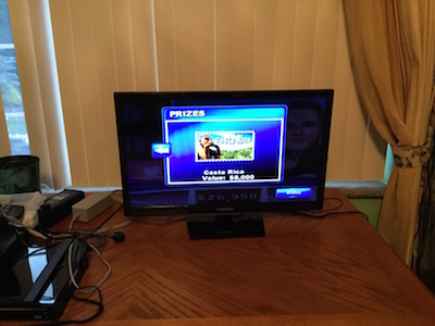 I was home and relaxing and played wheel of Fortune and look at all the prizes I won.