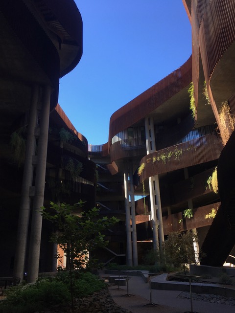 Tucson located in the middle of the Arizona desert, meaning there isn’t a lot of much regarding water or greenery. I thought this was true until I discovered probably one of the most interesting buildings I have seen and been inside. On the campus of Arizona, there is this building where you go through a set of doors, and you’re back outside. You enter into this type of canyon where you look up and see vegetation growing off the side of the building. You also have a large amount of water throughout the building as it collects it from the rainfall (when we have it). One of the coolest experiences I have had in this building was last May. While studying for finals, I came here as it was over 90 degrees outside. When I got to a table to start working it was much colder than outside, and there was a miniature waterfall next to me as water was circulating through the building. It was no longer in the 90’s but instead had cooled down making everything an environment I thought I would never find in Tucson. Because of this, I love coming here to study as it is a calming and relaxing place to work on whatever I need to get done. I added a picture of the building’s canyon and Audrey (my sister) taking in the sights when she was here in May helping me study for finals.