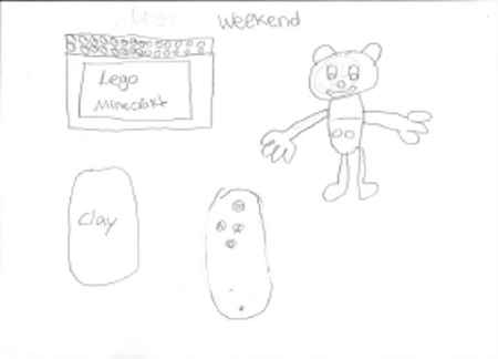Over the weekend, I went to Walmart with my parents and litter sister, Monse. My parent’s treated me to some new toys. I bought clay, Mickey Mouse doll, Lego Minecraft set, and a Wii remote plus. My little sister, bought clay and a monkey. First, I played with my Mickey Mouse doll. You put him on the floor and he dances and sings to the ‘Hot Dog Dance.’