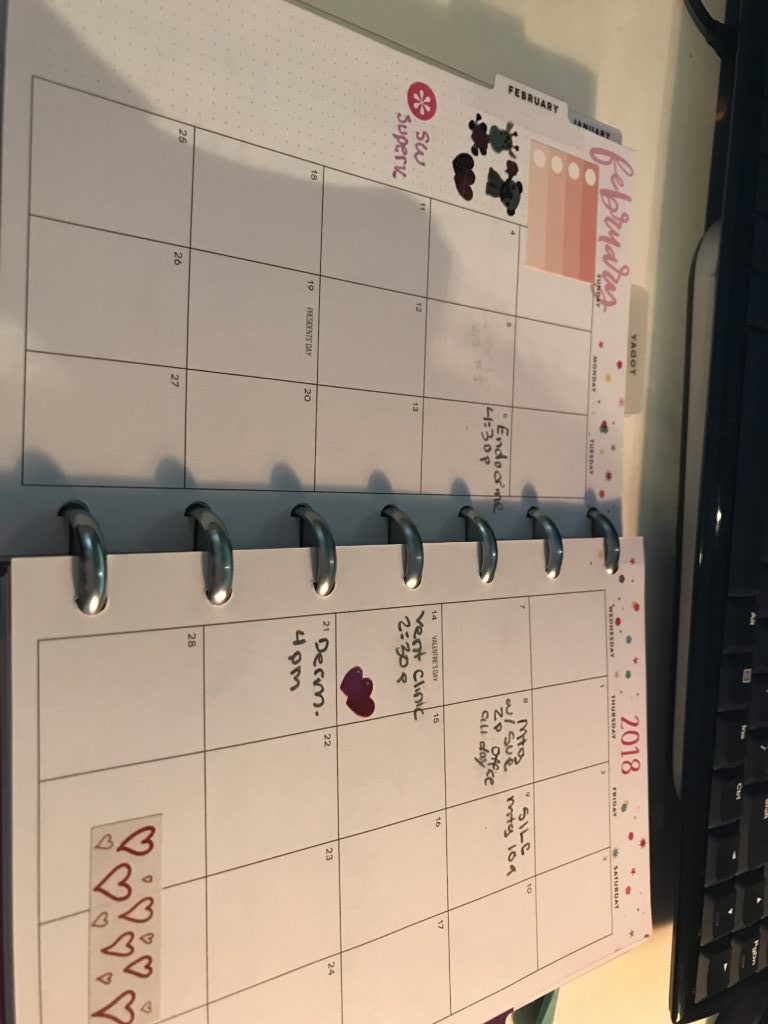 In terms of fun stuff: I’ve been able to hangout with Danielle a few times since the start of the New Year. For example, yesterday she and I went to a craft store where they had tons of different scrapbook papers and stickers. I have a mini planner that I use for day to day stuff and I like to decorate it with stickers and washi tape. I think I have too much… but oh well. It’s my current hobby haha. I don’t know why but it seems to relax me to just sit and look through all my sticker options and decorate the planner pages. Here are some examples: